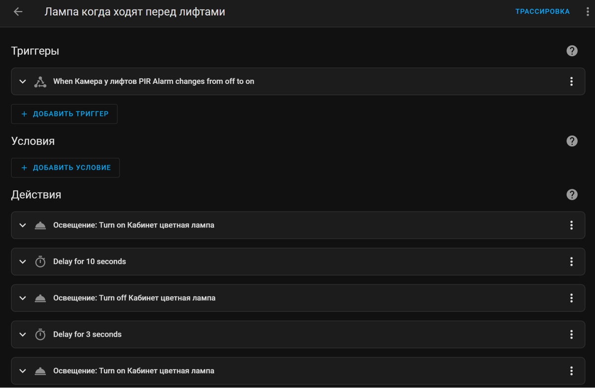 В приложении для настройки умной лампы задают расписание: например, чтобы она включалась каждые 3—4 часа вечером, а ночью не включалась. Если в квартире есть другие компоненты умного дома, возможны более сложные схемы работы. Например, лампа включается, когда срабатывает датчик движения на видеокамере в подъезде.