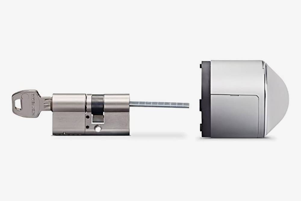 Но в последнее время умные замки стали гораздо проще, и часто это всего лишь накладка на личинку. Она устанавливается с внутренней стороны двери вместо вертушки. Такой замок можно поставить самостоятельно, а открываться он будет по команде со смартфона.